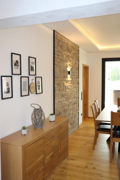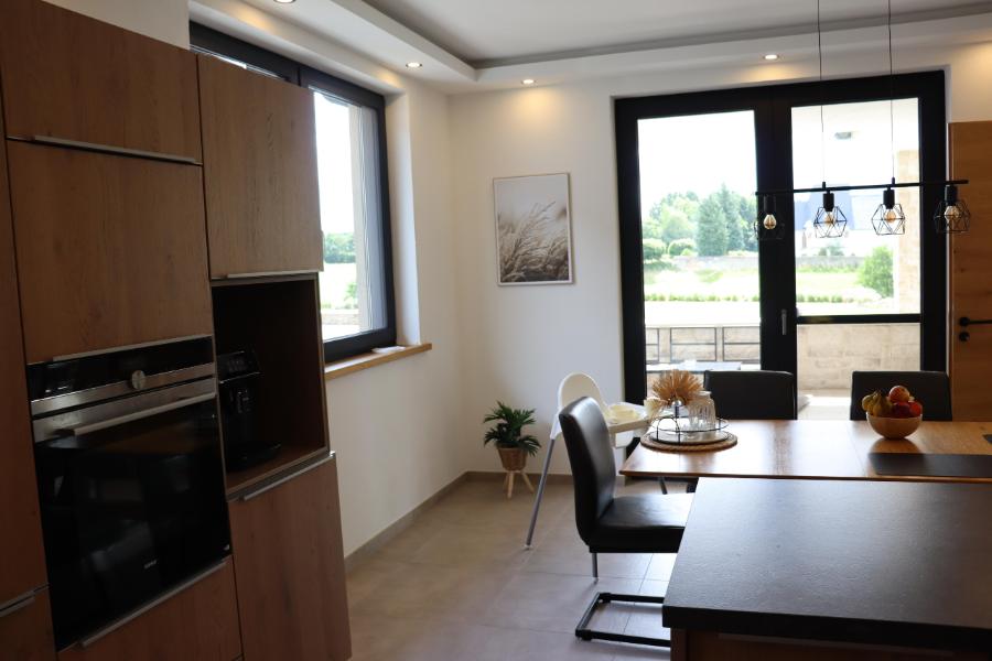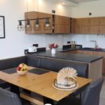 Die Küche ist komplett eingerichtet– mit Induktionsherd, Kaffeevollautomat, Backofen, Spülmaschine, verschiedenen Geräten und einer kleinen Grundausstattung. Ein praktisches Starterset mit Verbrauchsmaterialien ist ebenfalls vorhanden. Das große Wohnzimmer mit angrenzendem Esszimmer lädt zu gemütlichen Stunden ein. Für Spielfreunde stehen zahlreiche Spiele im Schrank zur Auswahl.