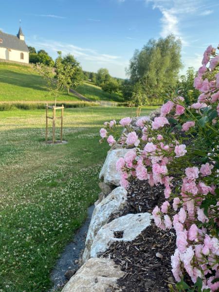 Die „Eifel Finca“ liegt im Herzen der Vulkaneifel, im ruhigen Ortskern von Wiesbaum. Das 2021 erbaute Ferienhaus verbindet modernen Komfort mit einer entspannten Atmosphäre. Schon beim ersten Ankommen genießen Sie den Blick auf die Alte Kirche, umringt von grünen Wiesen und Bäumen.
